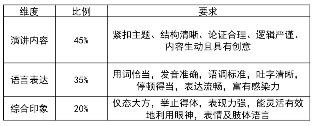 评委对所有审核通过的校内线上海选赛作品进行交叉、匿名评审。晋级者将在西校区参加4月23日(周三晚上,暂定)举办的线下晋级赛。线下晋级赛设置Prepared Speech(已备演讲,60分)、Impromptu Speech(即席演讲,40分)两个环节。具体要求请留意后续学习通消息。